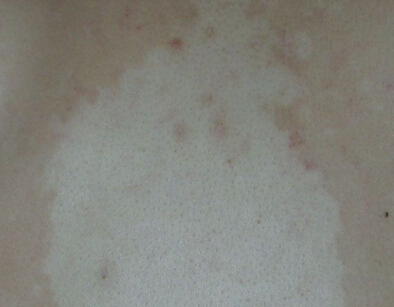 早期,患者背部常有白色疥疮。起初,颜色不是很白,边界也不明显。随着病情的发展,颜色会越来越深,白斑与周围皮肤的界限明显,斑点会逐渐扩散。